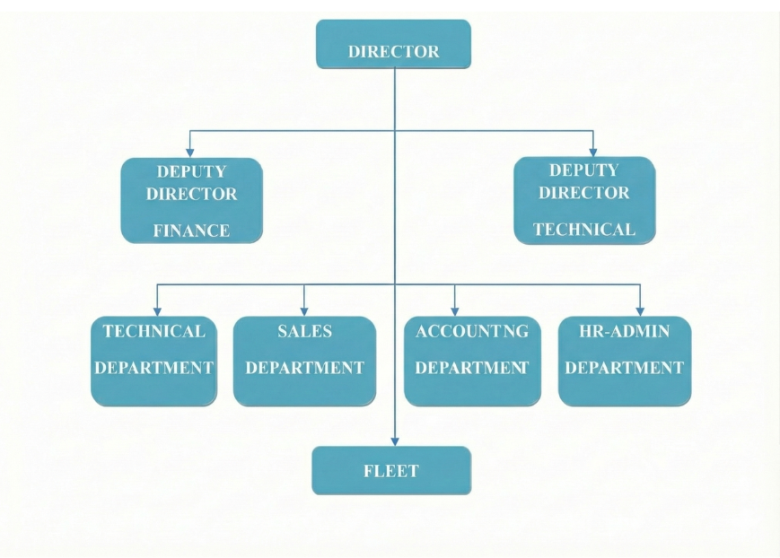 Blue Sea Marine and Trading Corporation introduces the company organizational chart.